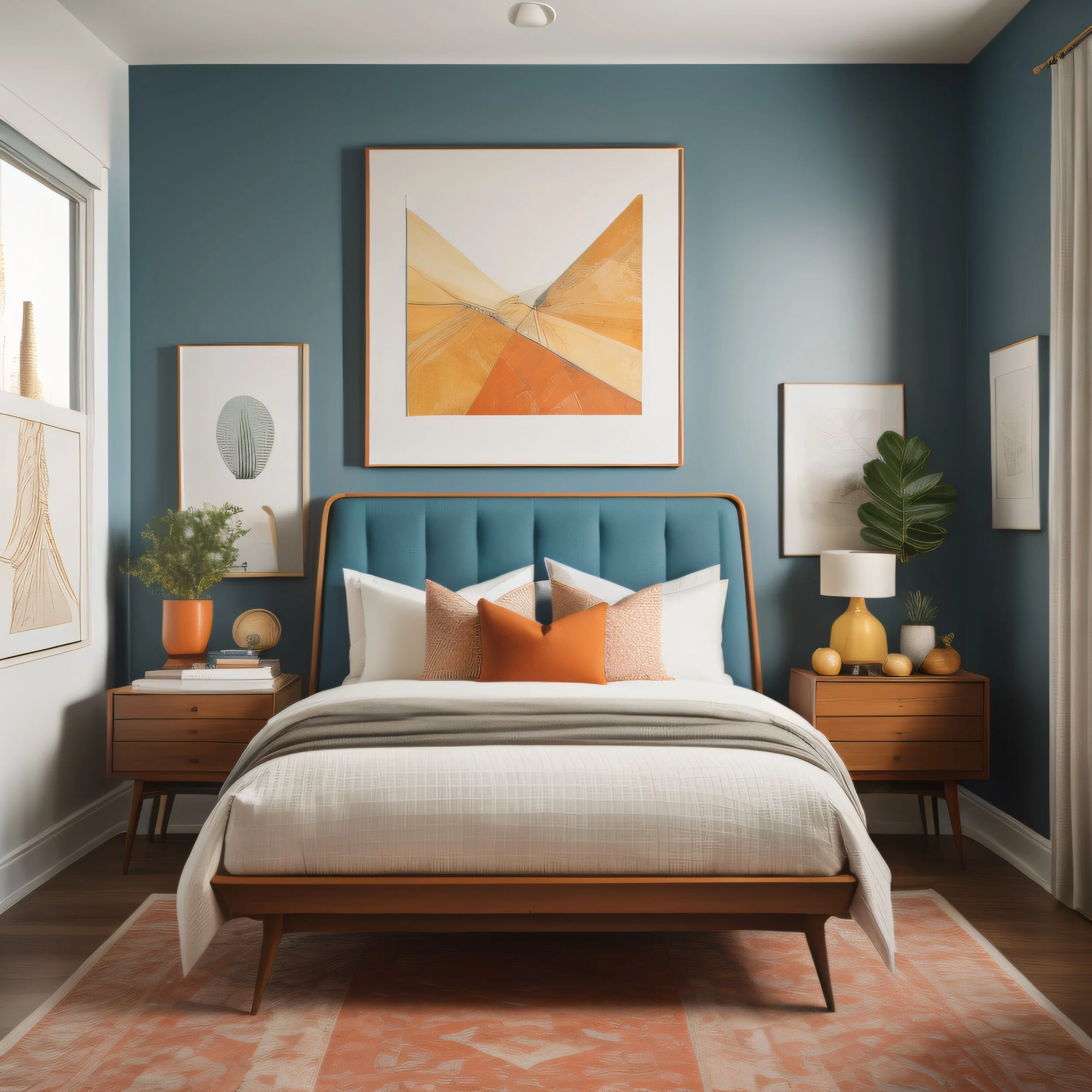 Mid-century modern style bedroom. Image created using AI via Imagine.